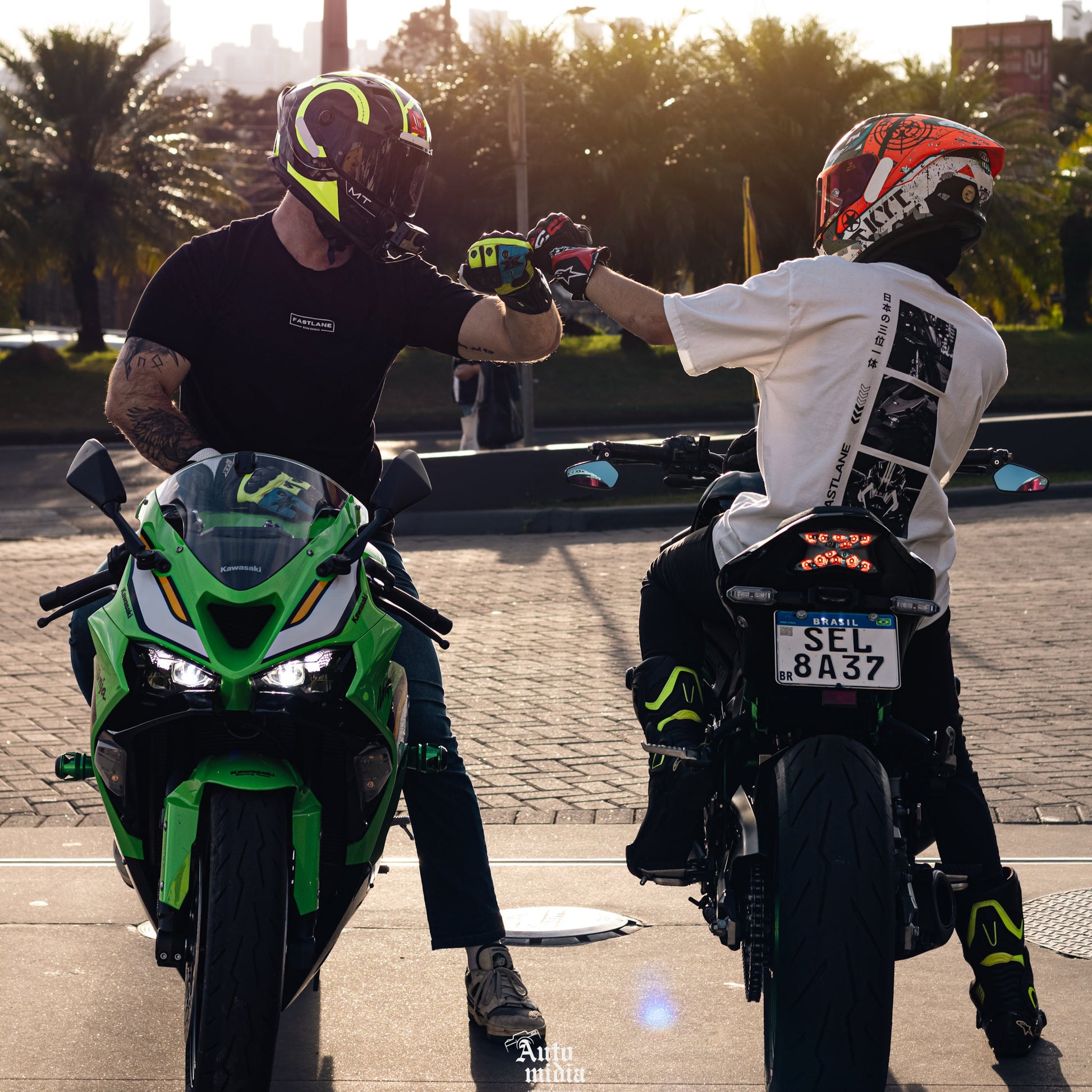 Criada para quem entende de velocidade. A camiseta oversized "TRINITY" é um tributo às superbikes japonesas, unindo em um só design a imponência da Yamaha R1M, da Kawasaki ZX-10R e da Honda Fireblade.